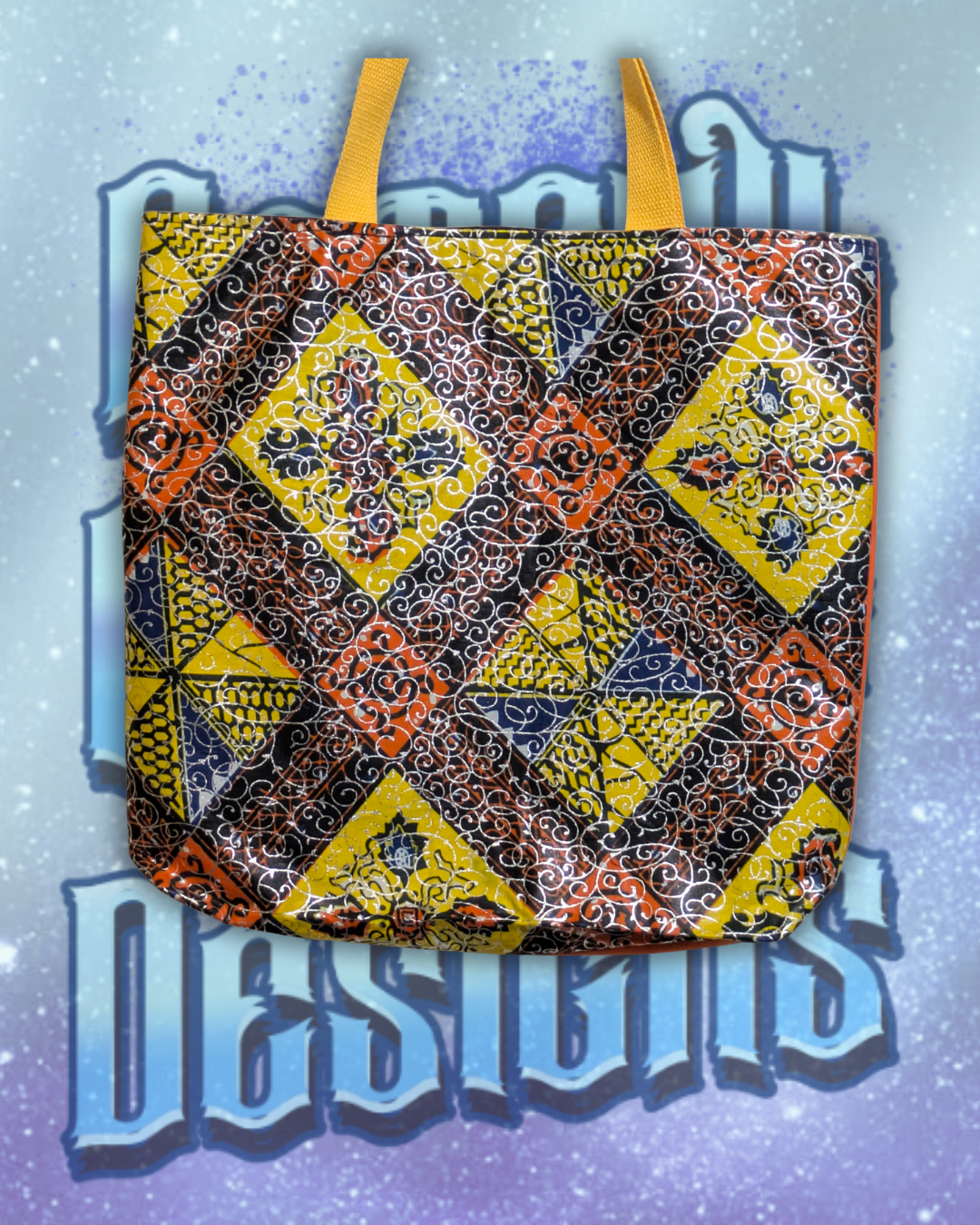 Adorned with wax print fabric that glimmers with silver vines, this tote inspires you to embark on every journey—whether it’s to the market or your next adventure—with confidence and style. Let this tote be your daily inspiration to carry love, history, and possibility wherever you go.